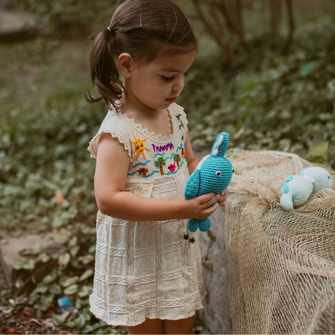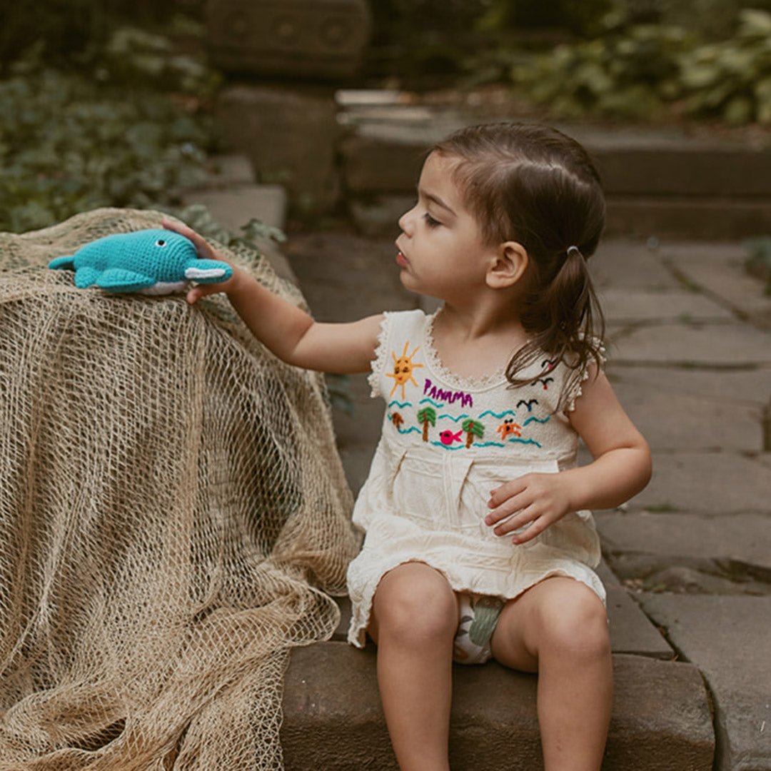 Nurture curiosity and introduce baby to a world of intelligence and imagination with our underwater creatures. Made with love from organic cotton yarn, our seaside collection is perfect for nature's little learners. Pebble's stuffed animals make perfect baby gifts and grace any nursery with style. These toys are designed to soothe and entertain kids during long car rides, trips to the ocean, play dates and much more. Handmade. Fair Trade. Ethically Sourced. Organic.