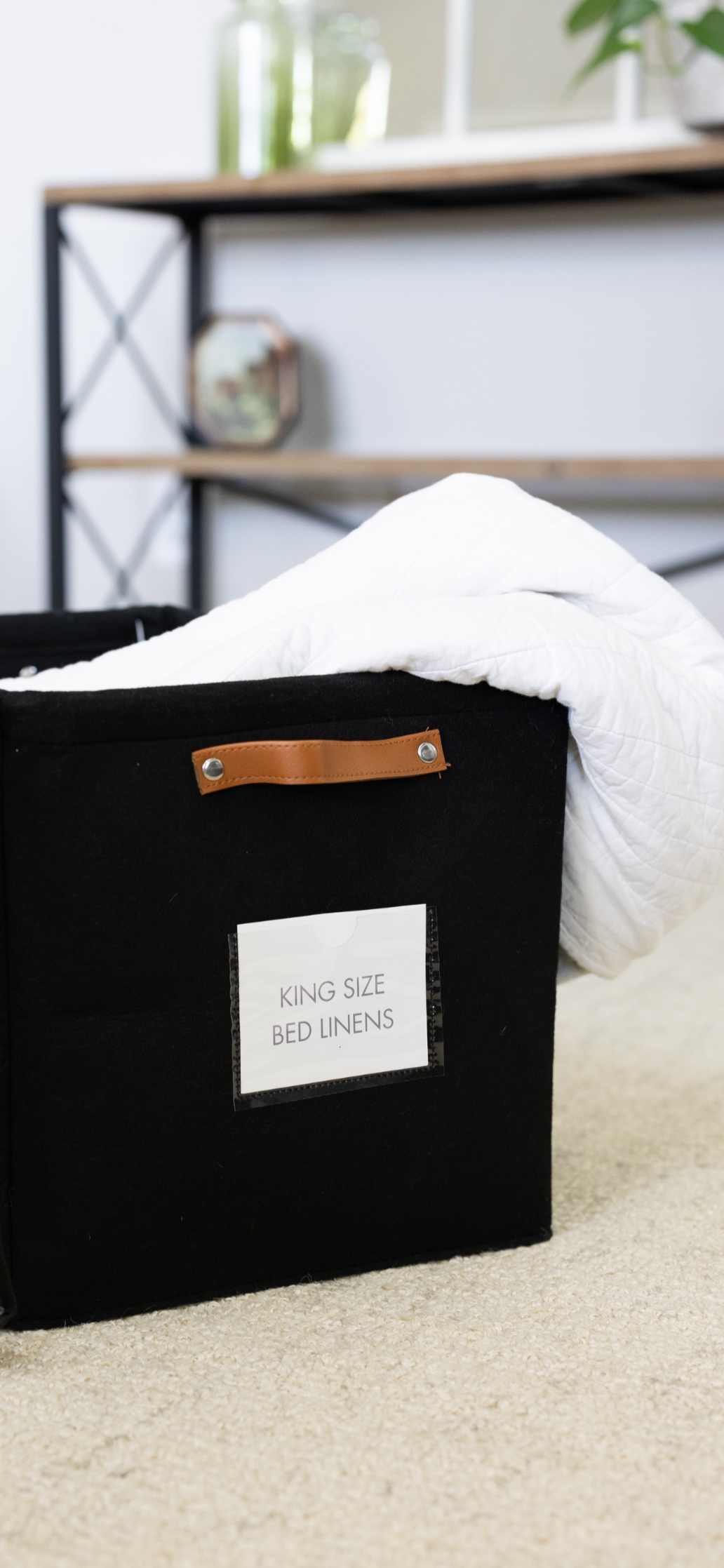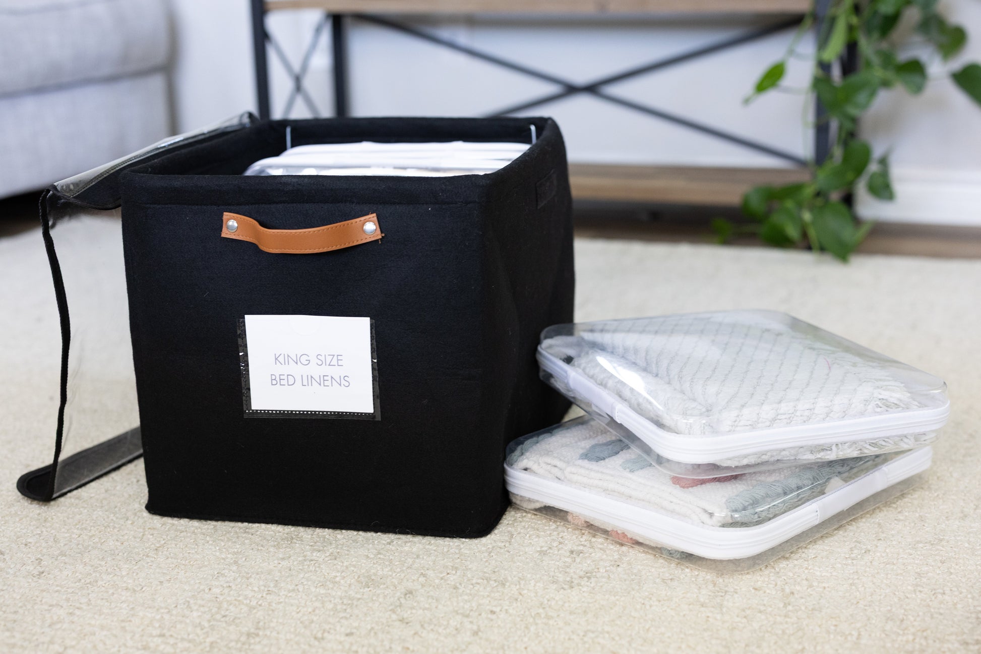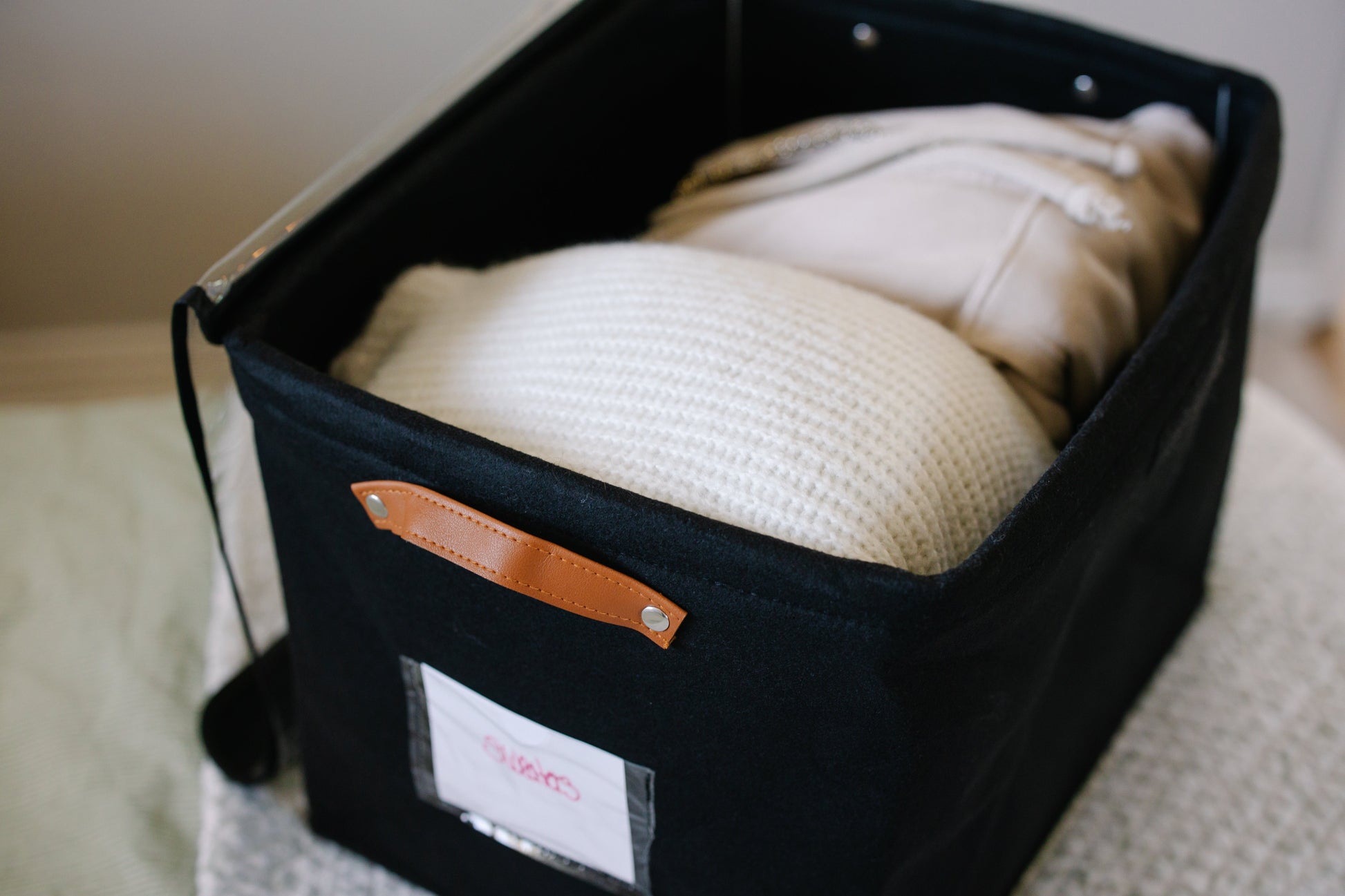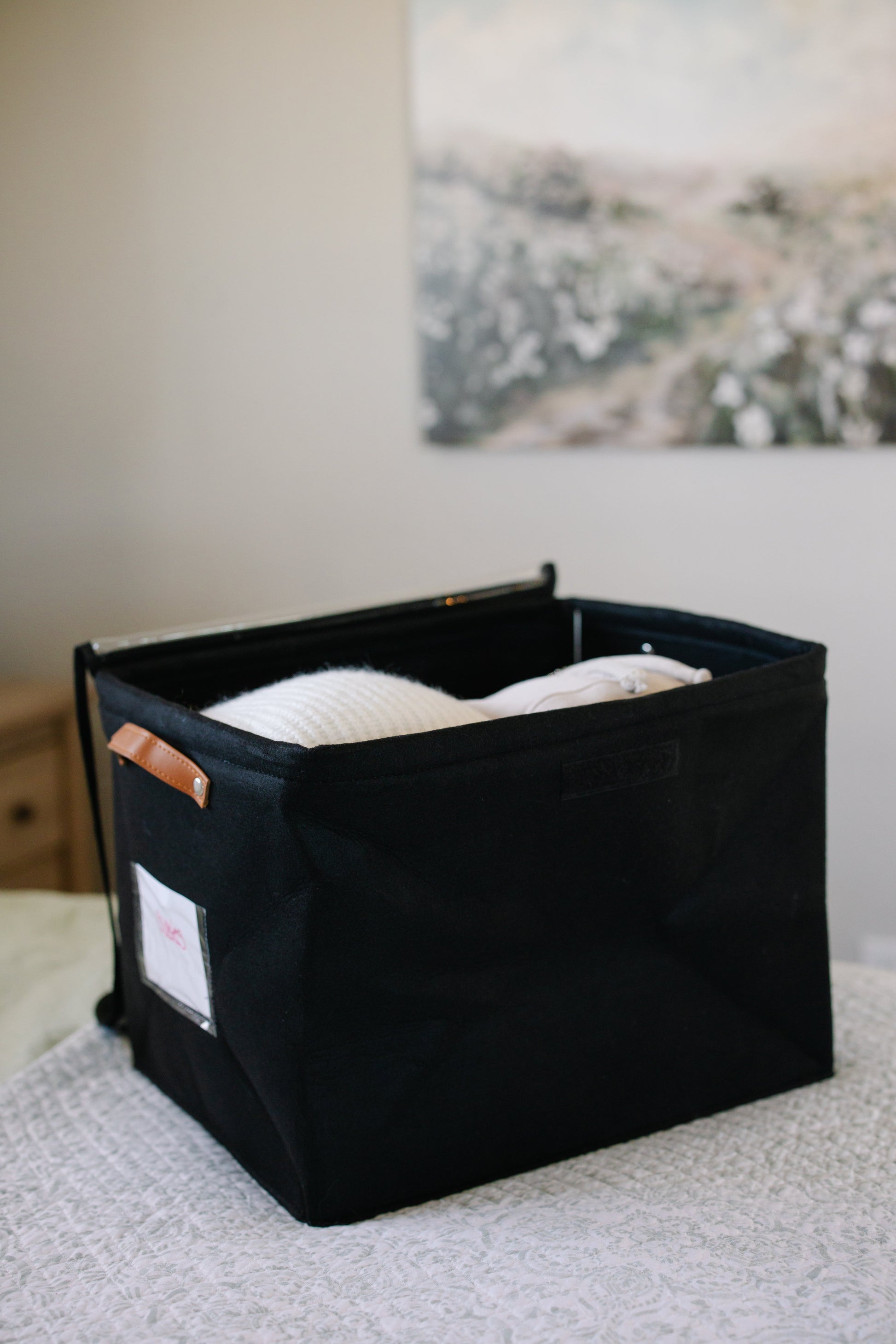 Meet your new secret weapon for storing the big stuff. The Bliss Stasher™ is a fully collapsible felt storage bin with a clear top lid—designed to fit Large and Medium Bliss Bins™ like a dream.