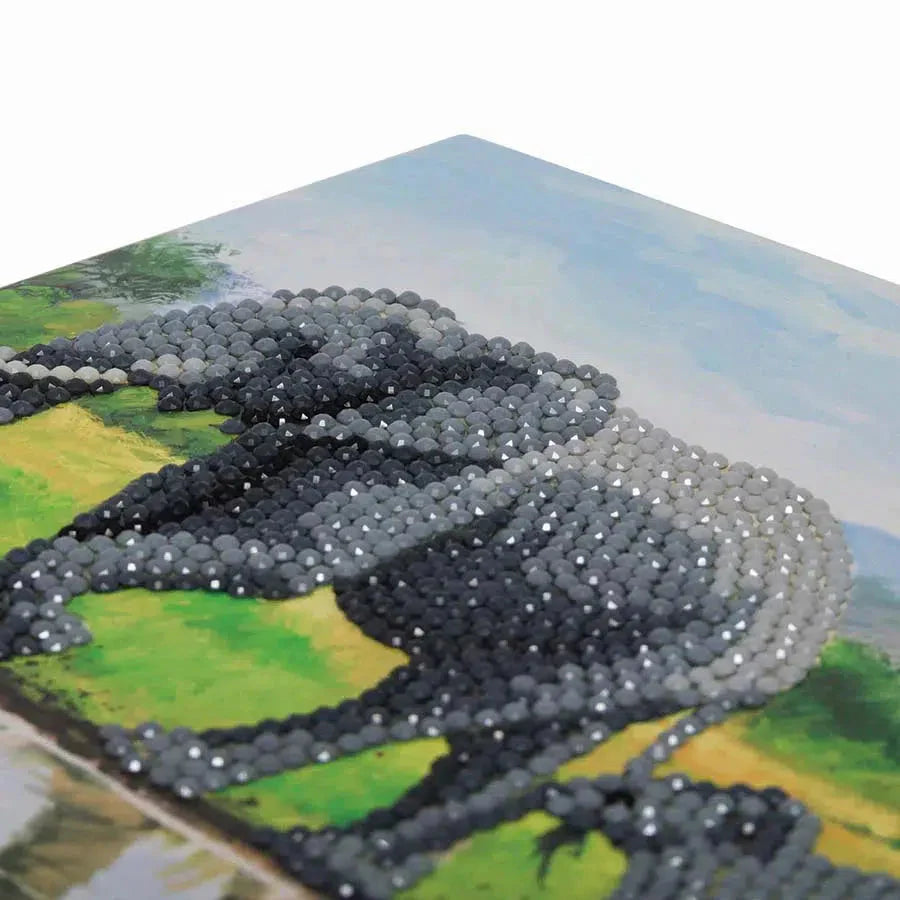 Crystal Art card kits are art and craft kits, ideal for children ages 8+ and adults, which enable you to make your own sparkly and good crystal cards. The technique is similar to painting by numbers. Each card design has a numbered, adhesive template. After adding some pink wax to the pick up tool (both included), simply lift up the colored crystals and place them on the corresponding numbered dots. They affix instantly. The technique is relaxing and therapeutic, and the result is a good piece of rhinestone art which you can gift to loved ones. Crystal Art card kits are also a great way of making DIY Christmas cards. Making a crystal card takes 45 minutes to 1 hour. This card is 18 x 18 cm / 7 x 7 inch in size.
