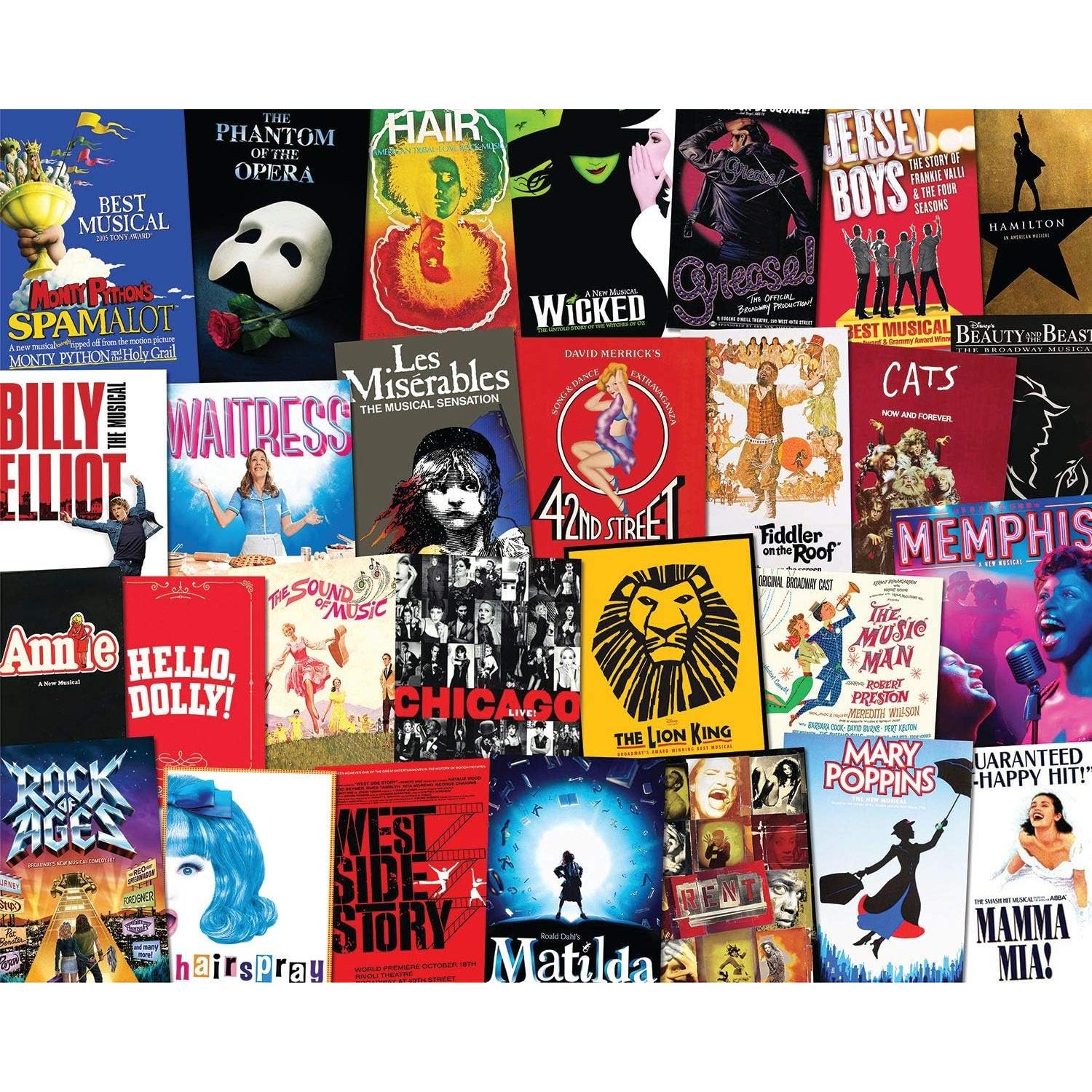 For an audience of all ages, our collage of Broadway classics delivers exceptional entertainment. It's truly a puzzle to upstage the rest with iconic playbills creating a unique ensemble of difficulty.