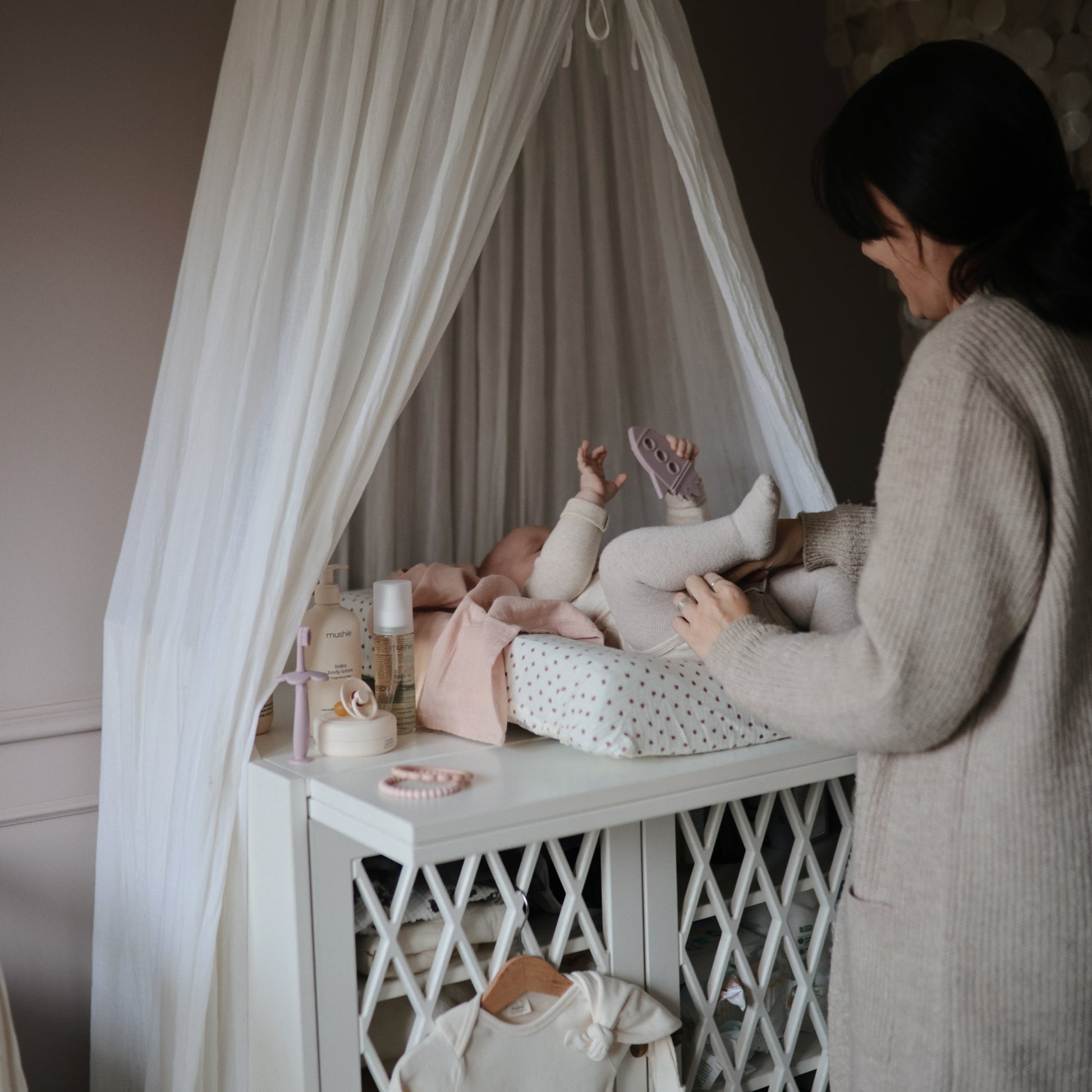 Made from 100% cotton, our cozy, extra-soft muslin changing pad cover is pre-washed for softness against baby's delicate skin. Muslin stays breathable while keeping your baby warm and cuddly.