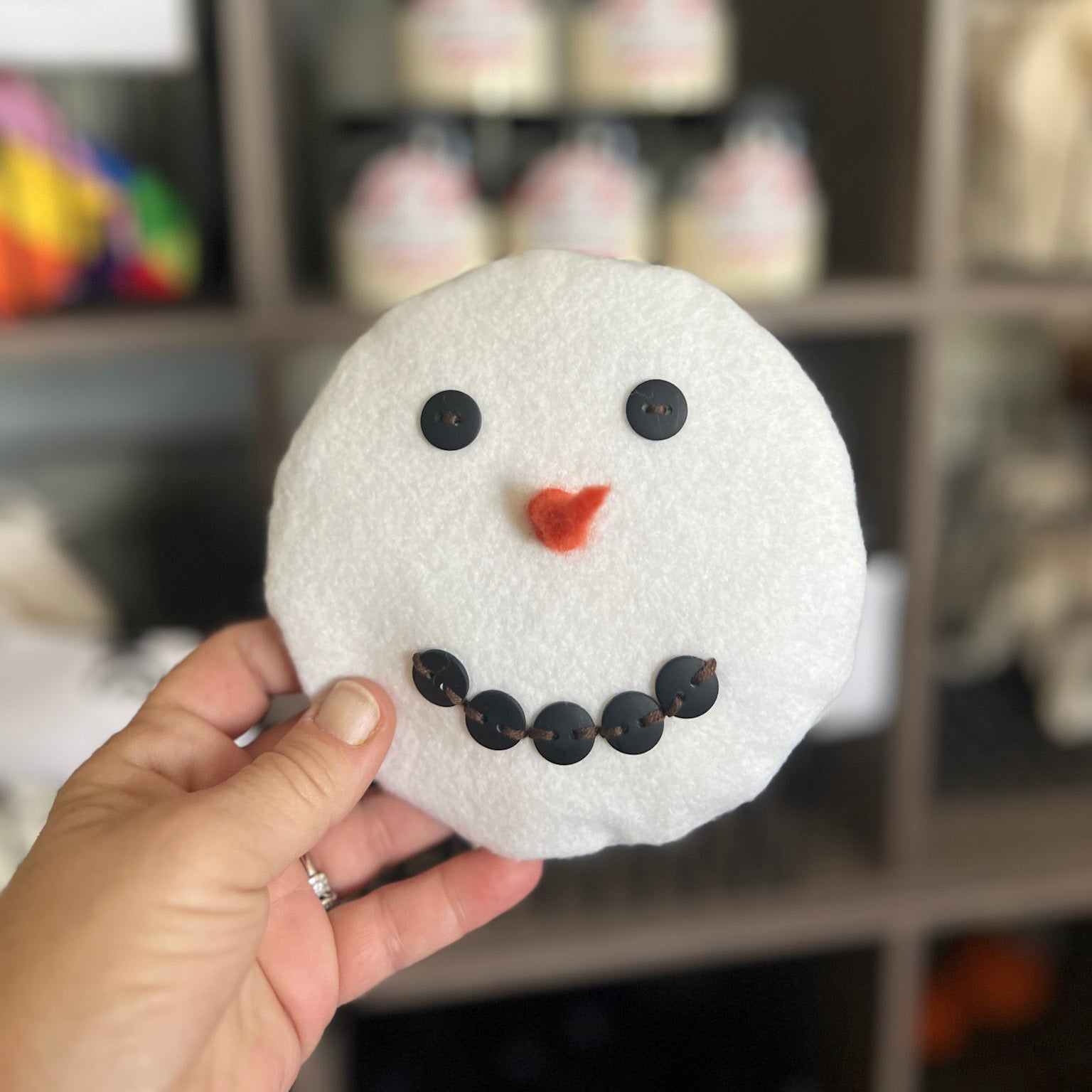 Meet your new winter companion—a handmade felt snowman pouch with personality to spare. Featuring button eyes and mouth plus a charming felted carrot nose, this soft friend opens and closes with a smooth zipper for endless play possibilities. Inside, ten cozy felt snowballs await discovery, perfect for counting games, pretend play, and portable adventures. Zip it shut, carry it anywhere, and unzip the fun whenever the mood strikes.