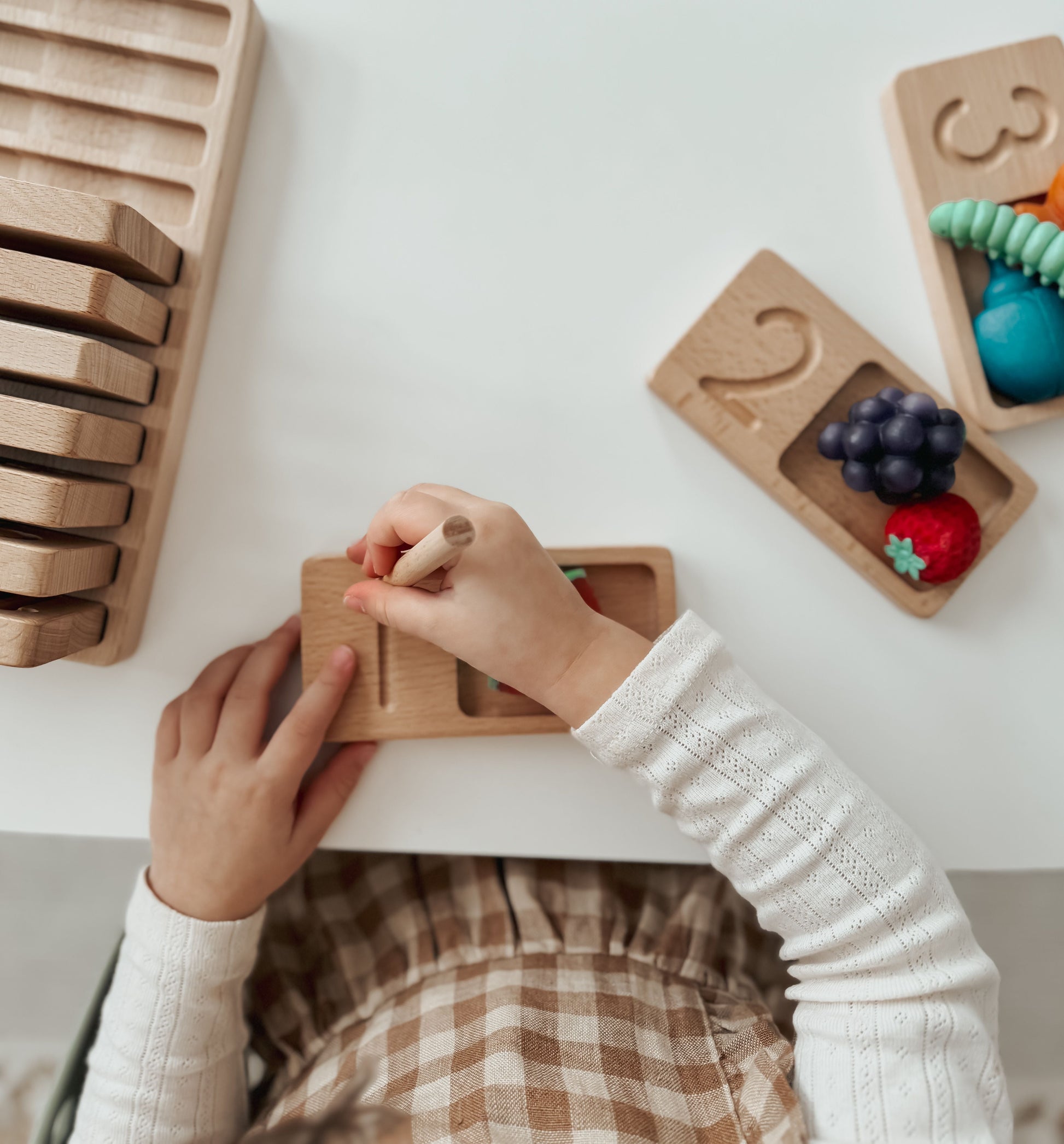 Use manipulatives or sand to represent or draw each number with your child to help them gain a more concrete understanding of numbers! Numbers 0-10 with the holding tray are included.