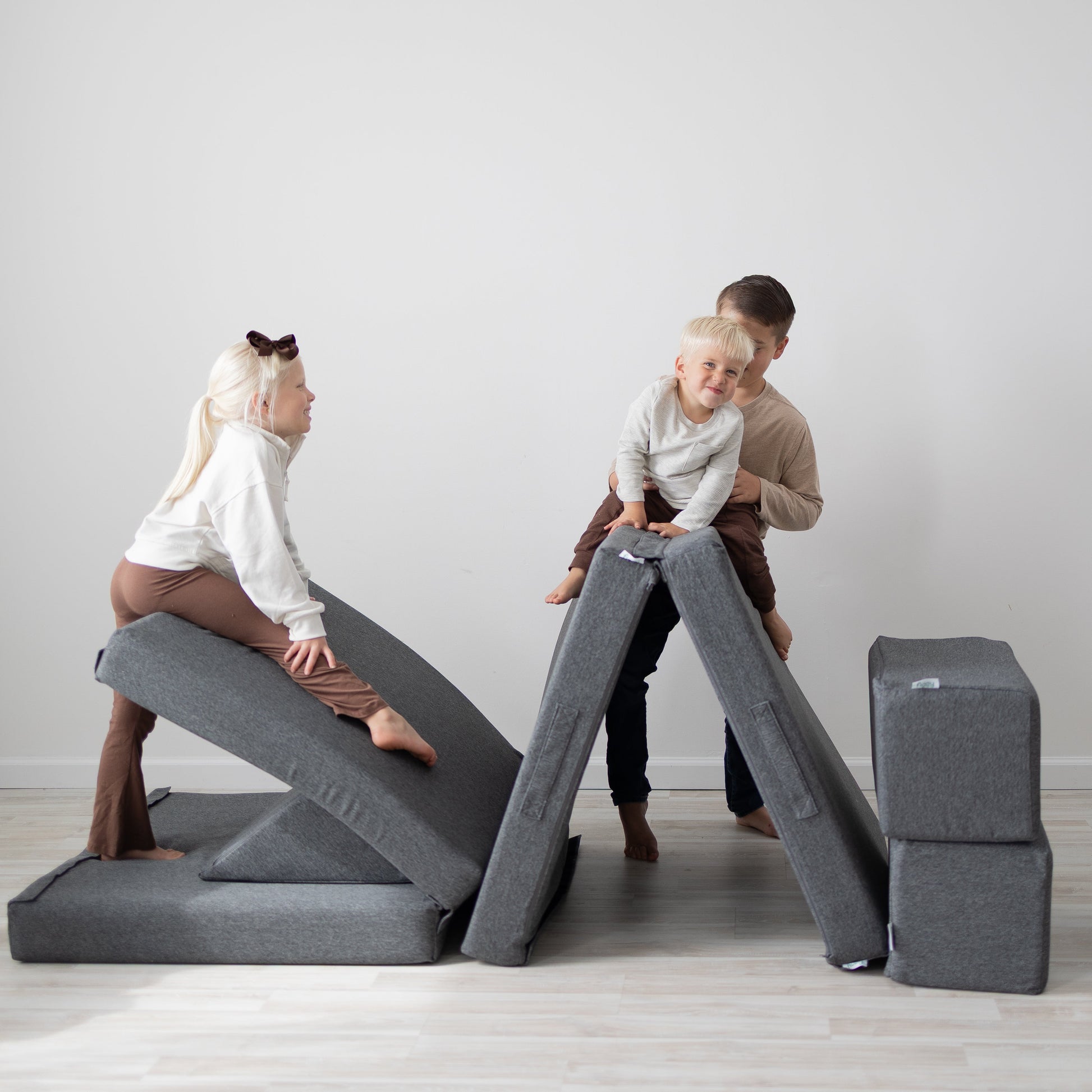 The Figgy is a modular kids play couch made in the USA, designed by moms. This play couch is anything and everything an imagination can create. A raft on the high seas. A treehouse high in the sky. A rocketship to the moon.