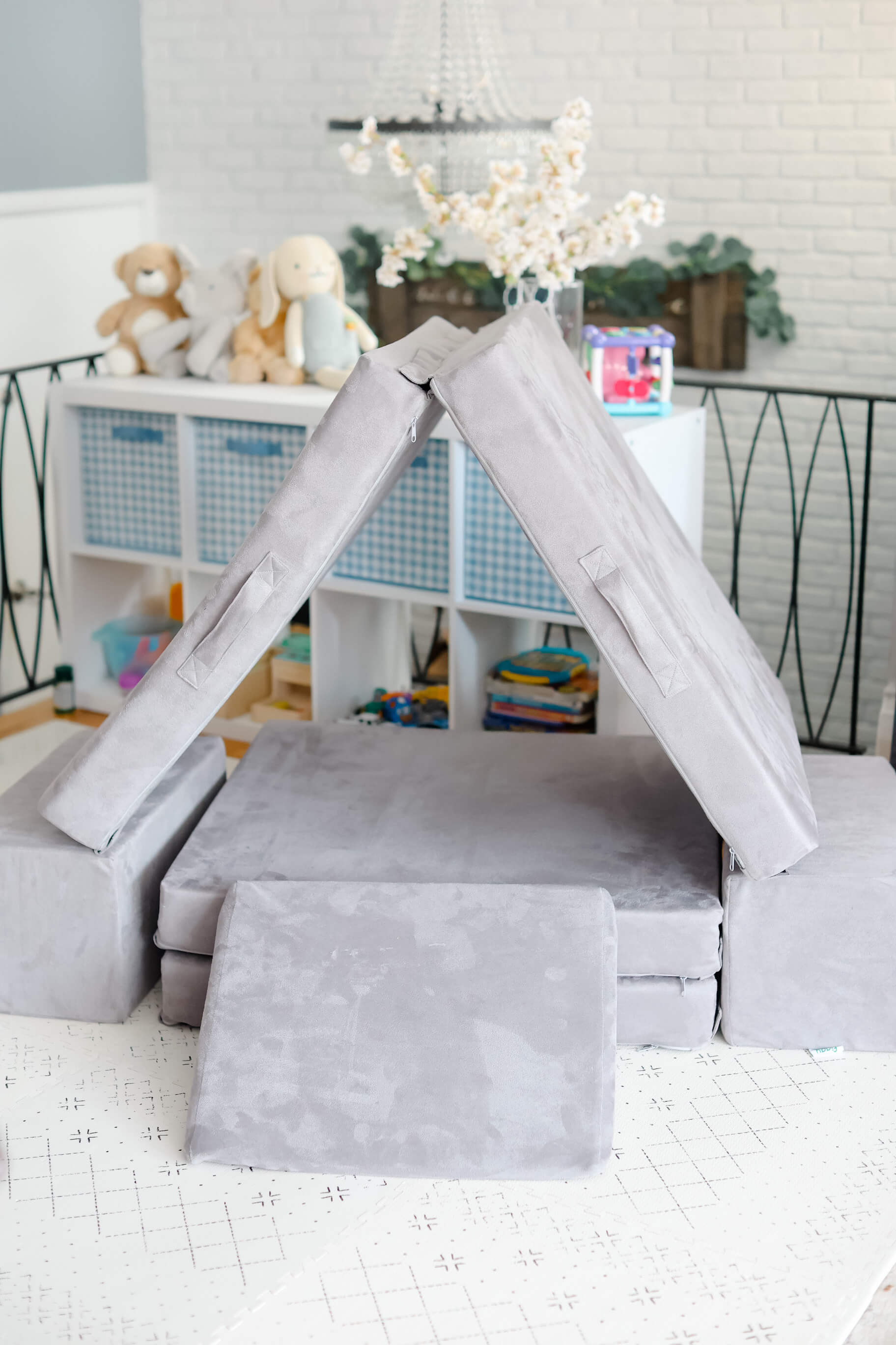 Build your perfect Figgy in the machine washable fabric and color of your choice! The Figgy play couch includes 4 equally thick base cushions, 2 rectangles, and the option to add wedge(s) and 100% waterproof liners. Built for durability and safety, the Figgy grows with your family through every stage of play. We also offer FREE SHIPPING sitewide!