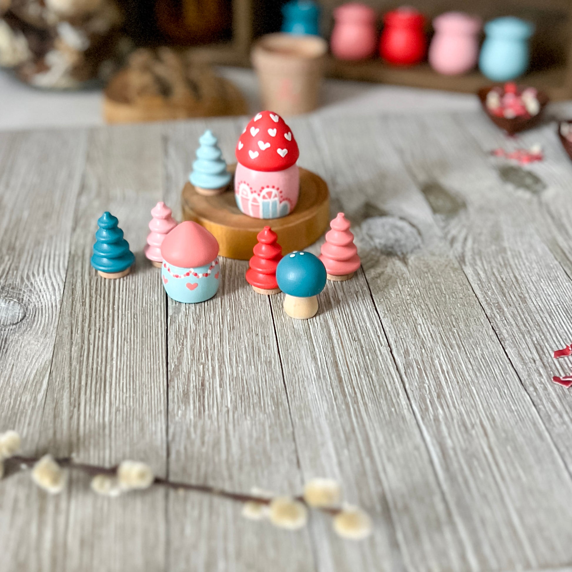 Enjoy the magic of open ended play with this little Valentine Village in our adorable Valentine's Day colors.