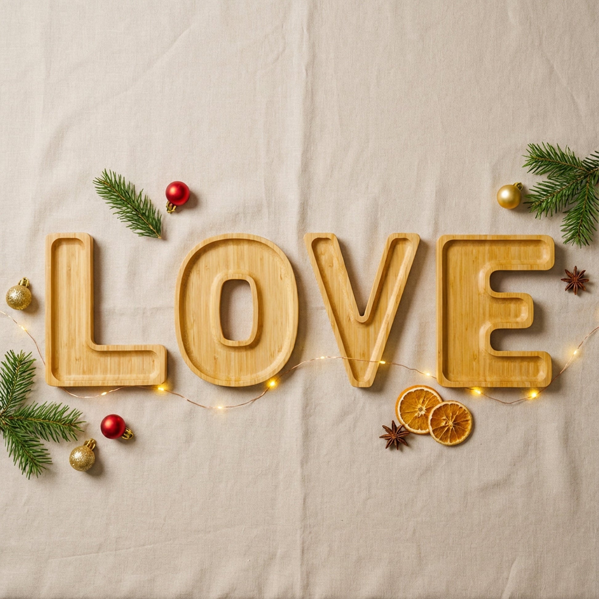 Our Bamboo Charcuterie Trays spell out LOVE, adding a touch of elegance and sustainability to your serving table. Made from durable bamboo, they are perfect for showcasing your favorite cheeses, meats, and snacks.