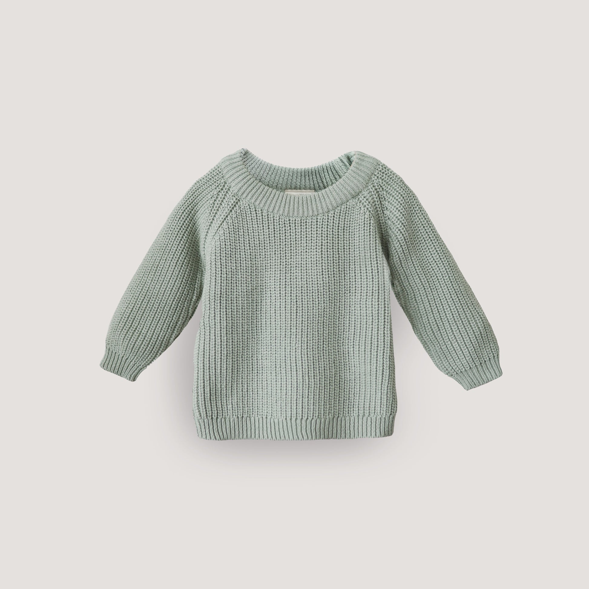 Made with organic cotton, our Chunky Knit Sweater was designed to keep baby warm. Intentionally oversized for comfort and style, pairs well with our Chunky Knit Pants and Chunky Knit Beanie for a complete, cozy look.