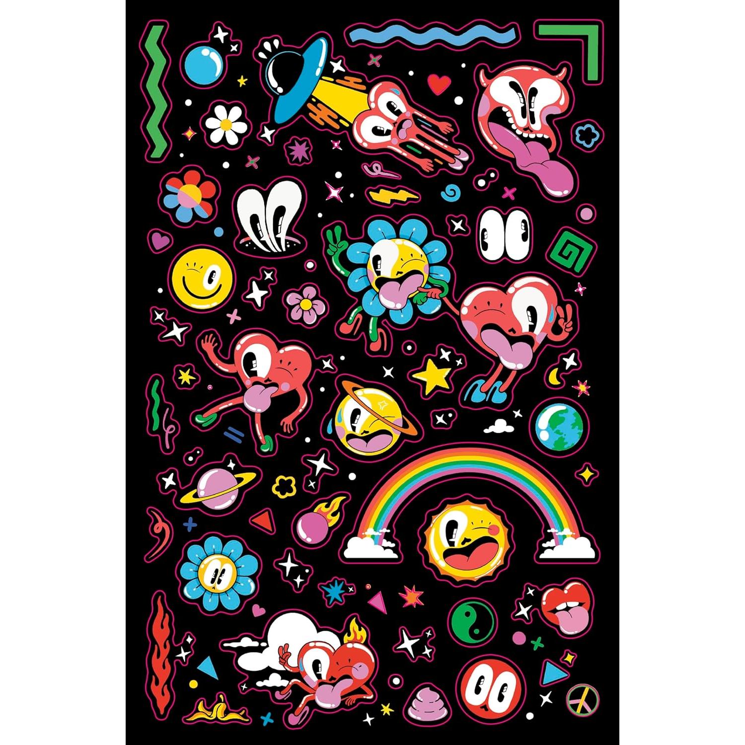 Vibrant characters invite you to Dreamland, an 18 x 24 inch puzzle fizzing with Hattie's iconic sass and retro charm. In this psychedelic, poppy piece of art, flowers and hearts in high heels dance on a collage of rainbows, stardust, and checkerboard floors. An enclosed sticker sheet gives puzzlers the chance to inject some of Hattie's signature style into their everyday lives using stickers on notebooks, phone cases, computers, or any surface that needs a jolt of style and color.