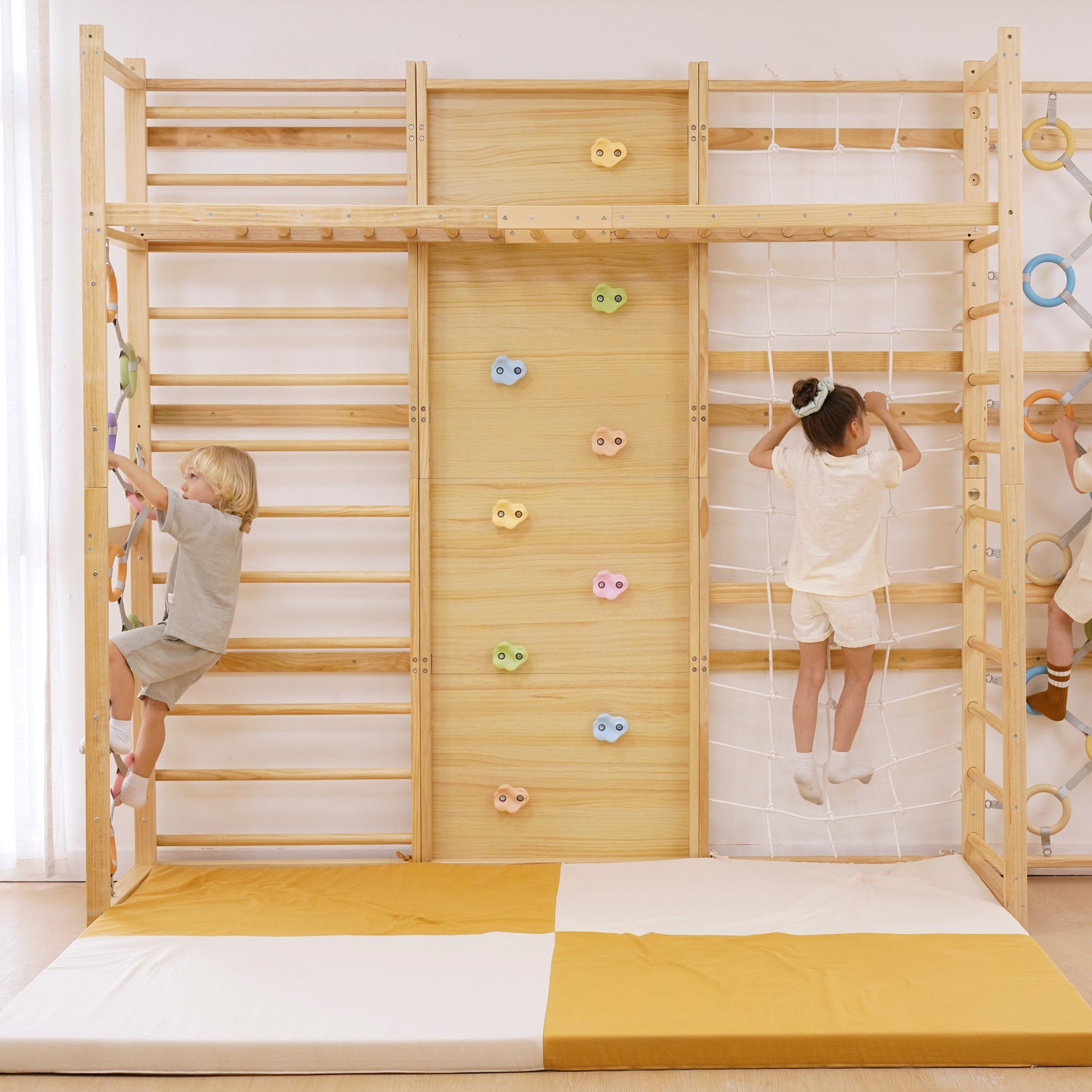 Constructed from premium wood with a smooth, child-safe finish, this attachment easily integrates with the Walnut ladder, creating a full-body exercise and play experience within the comfort of your home.