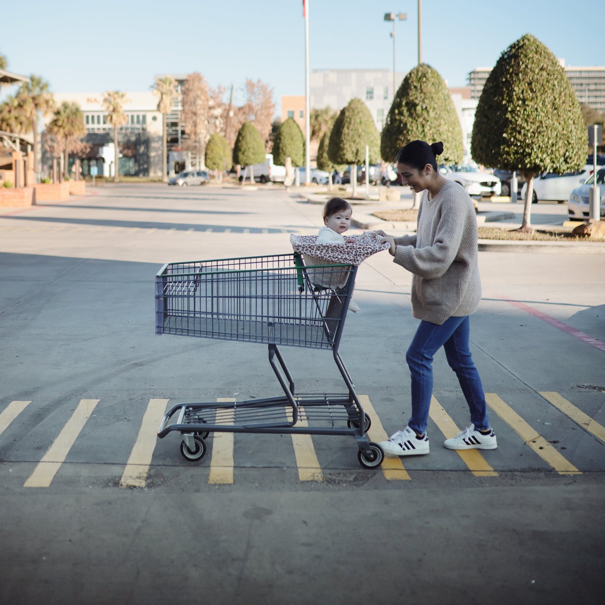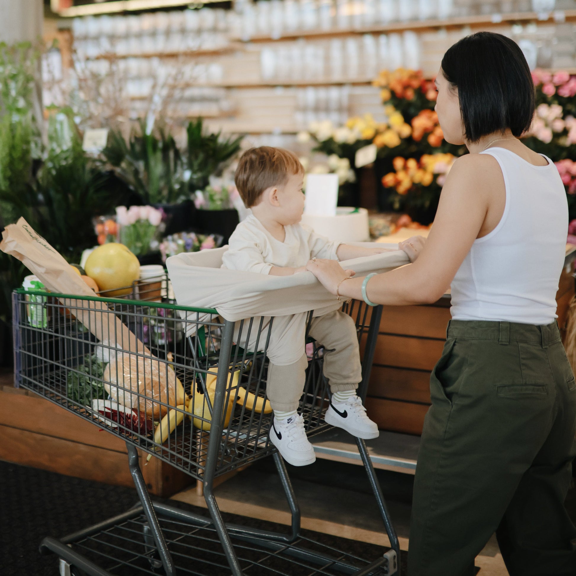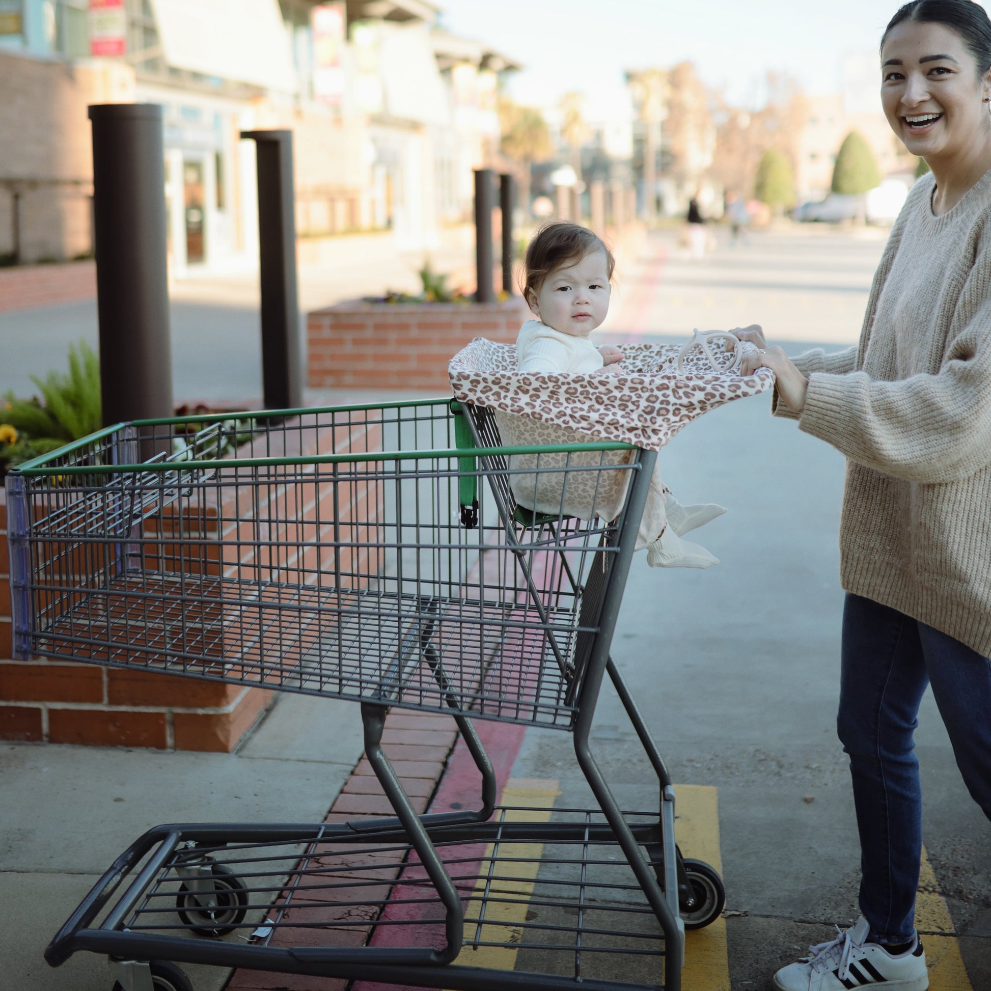 Ideal for nursing, fabric remains cool to the touch and stretches to fit single seat shopping carts, high chairs, carseats and strollers. This comfortable cover will quickly become a diaper bag staple for parents on-the-go with its functional and versatile features.