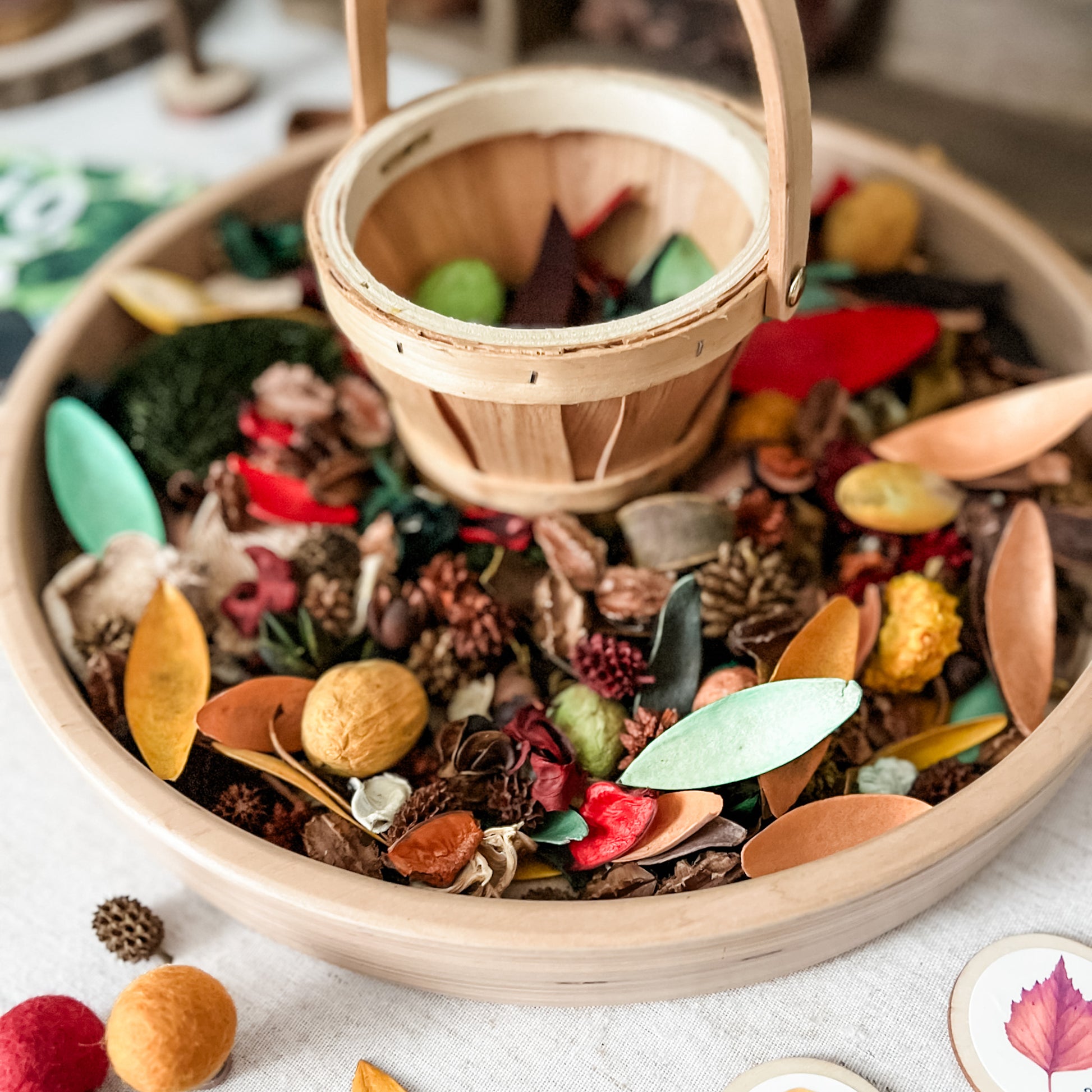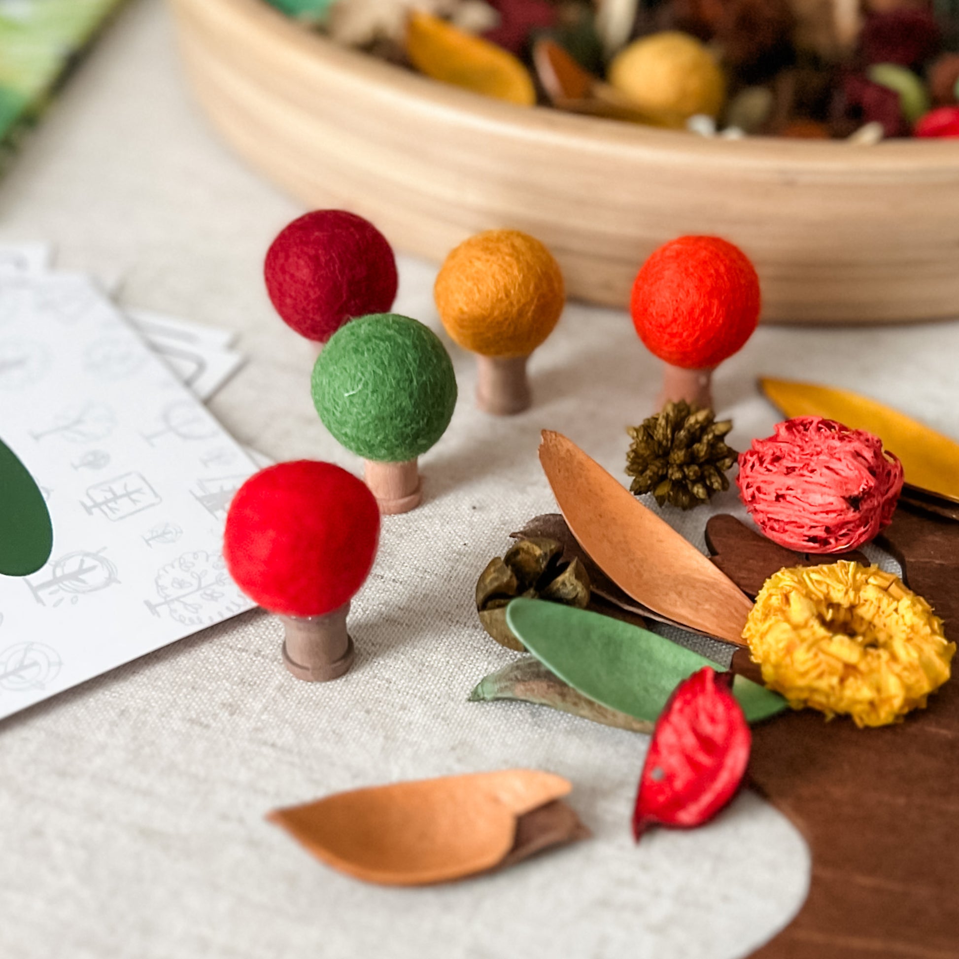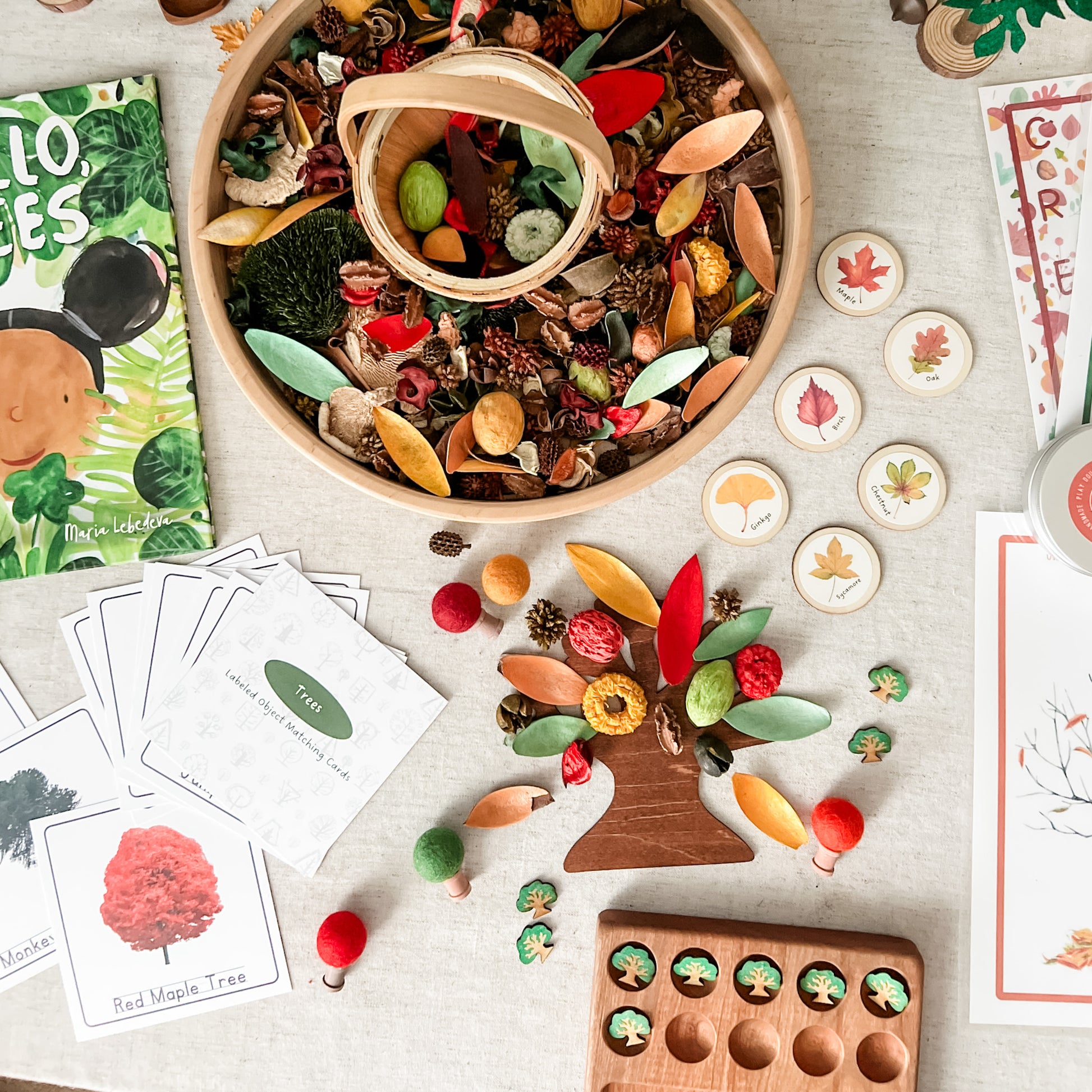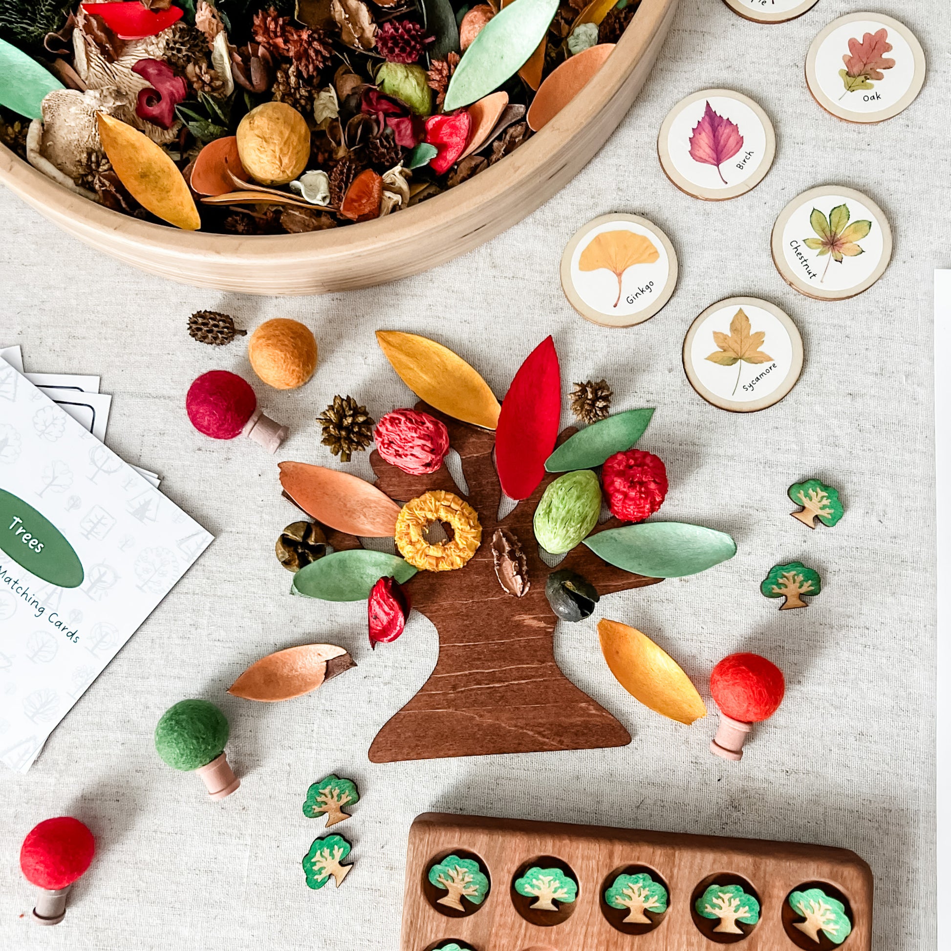 Invite children to explore nature's cycles through tactile discovery. This sensory bin combines natural materials with tree-themed elements, encouraging hands-on learning about seasons, growth, and woodland ecosystems. Perfect for open-ended play, it develops fine motor skills while fostering curiosity about the natural world. Ideal for classrooms, homeschools, or quiet-time exploration at home.