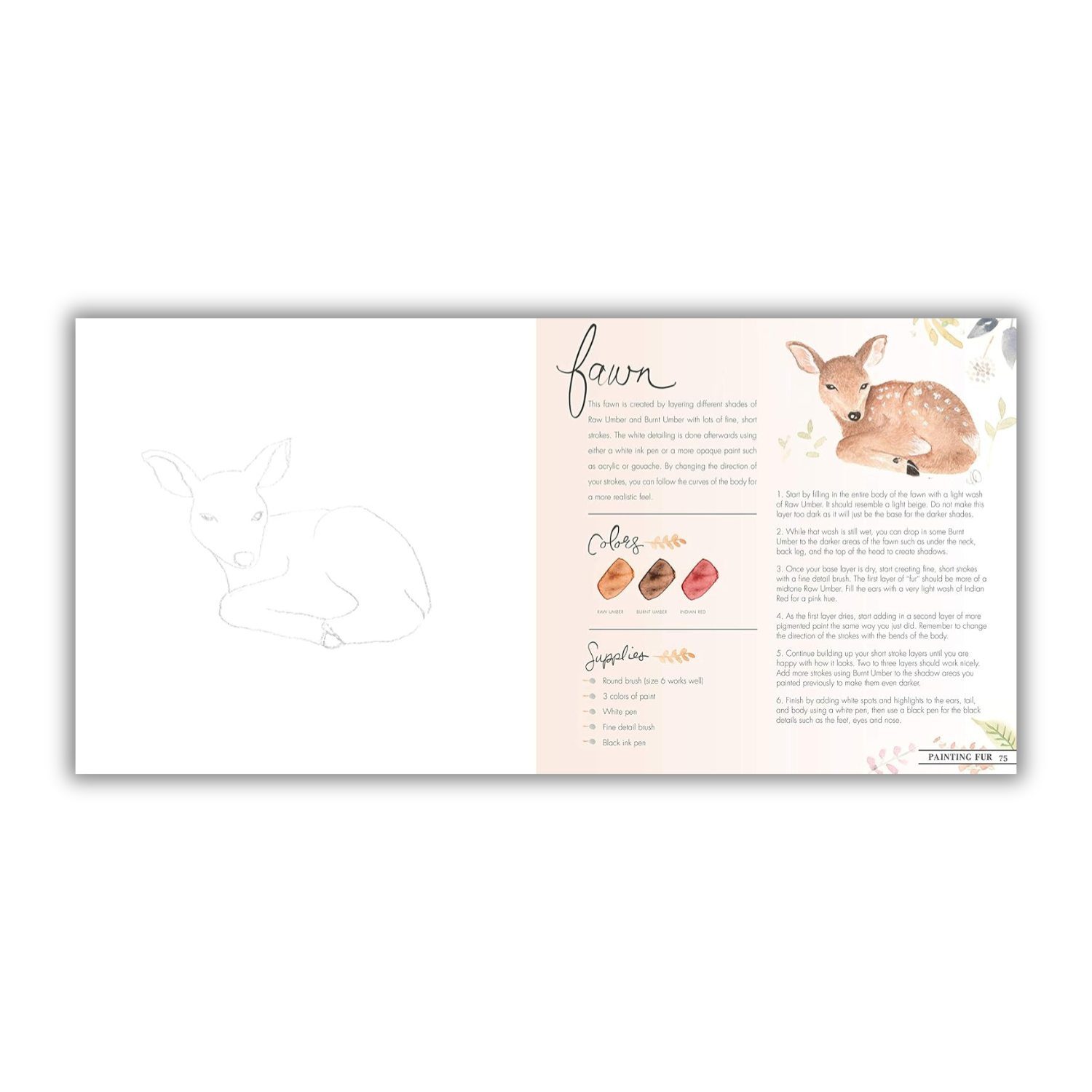 In Watercolor With Me in the Forest, Dana provides light outlines of each project, and every page is printed on premium art paper, so you can focus on the watercolor techniques―wet-on-dry, wet-on-wet, painting fur and ink and wash. Even if you’ve never picked up a paintbrush before, Dana’s creative tricks will ensure that every piece of art is frame-worthy.