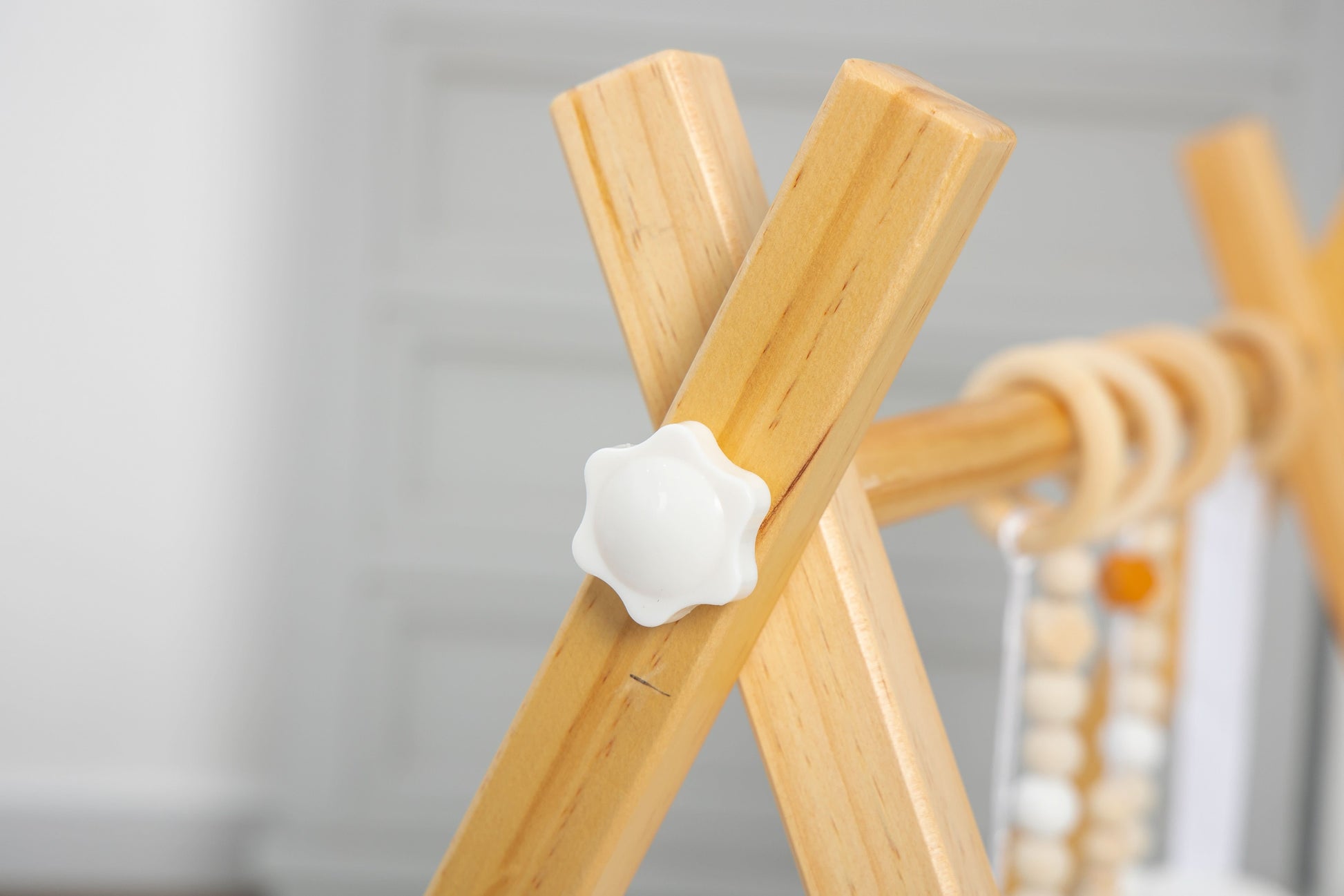 Support your baby’s early development with the Lilac Wooden Baby Gym, a beautifully crafted Montessori-style play gym designed to stimulate sensory exploration and motor skill growth. Featuring a sturdy wooden frame and soft, engaging hanging toys, this baby gym is both functional and aesthetically pleasing, making it the perfect addition to any nursery.