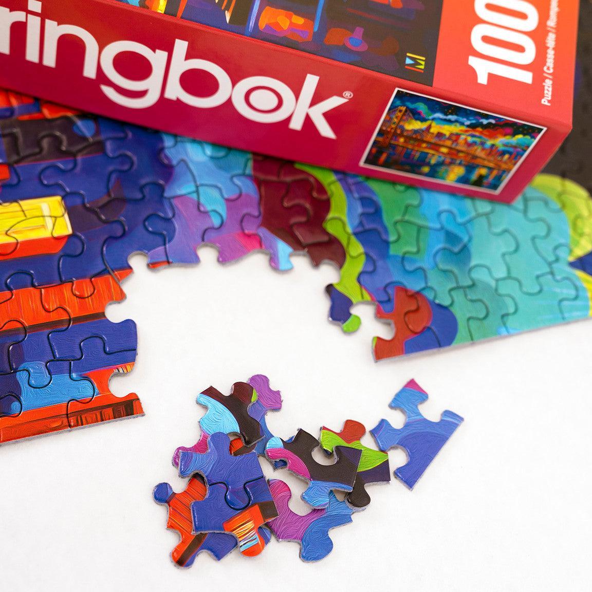 Step into the vibrant nightscape with Springbok's "Midnight in San Francisco" 1000-piece puzzle which, skillfully illustrated by the talented artist Michael David Ward. This jigsaw puzzle desigend for adults let's you lose yourself in the luminous skyline of the city by the bay, each piece intricately crafted to capture its iconic landmarks and bustling energy. Chen's attention to detail ensures a mesmerizing puzzle experience, where every fragment brings you closer to completing this dazzling masterpiece of urban beauty.