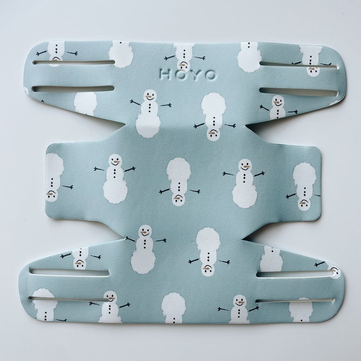 Reversible - hand drawn snowman print on one side and powder blue on other side
