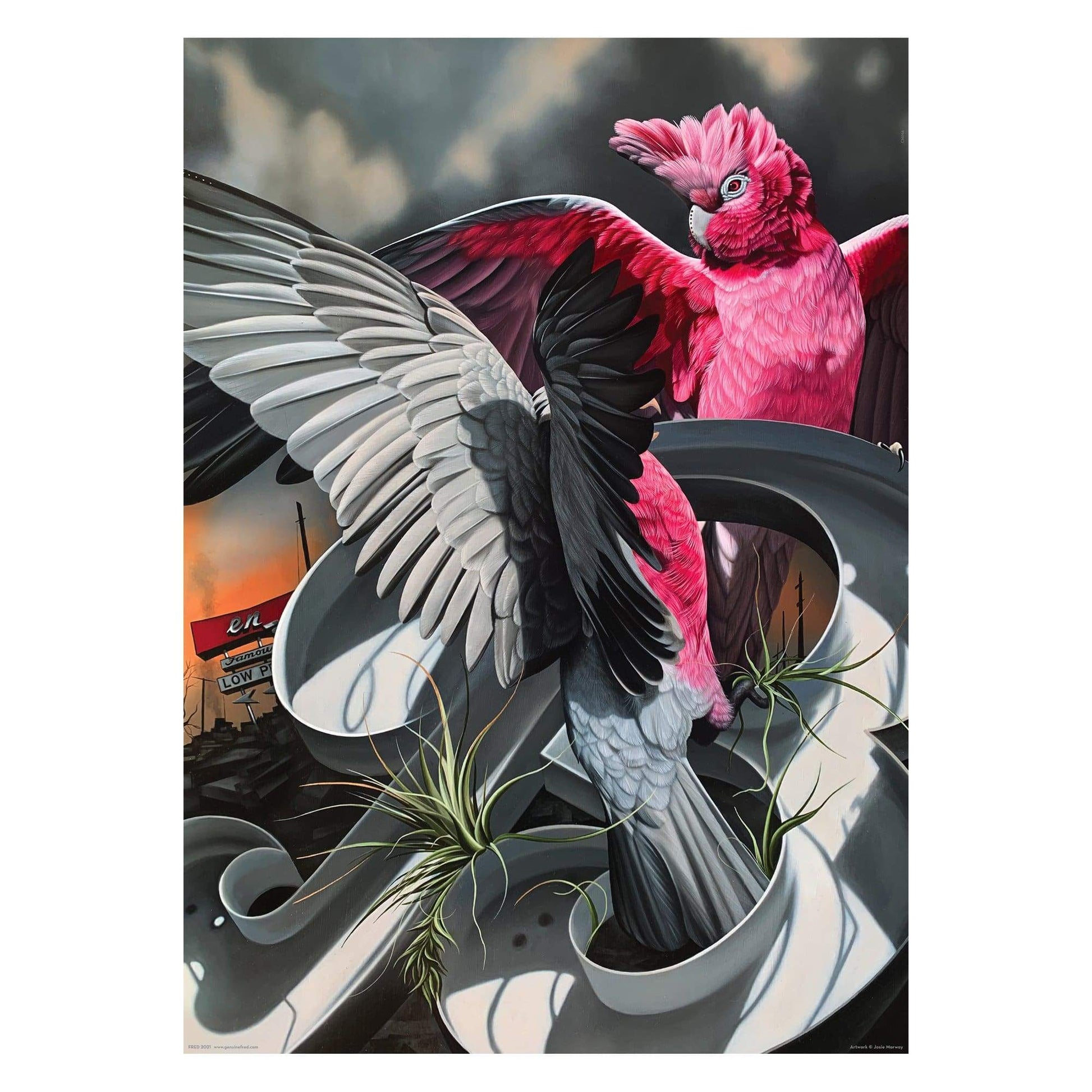 Born in Massachusetts, self-taught artist Josie Morway moved over 20 times in as many years before coming back to Boston. Her work has been shown in museums and galleries worldwide, from London to Australia (to the streets of Juarez, Mexico), and across the US from NY to LA, including the DeCordova Museum and Scope at Art Basel Miami.