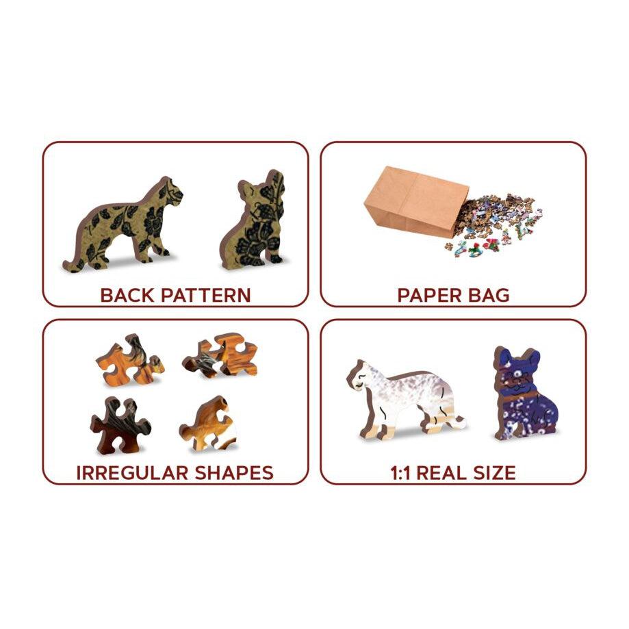 Each puzzle contains numerous unique shapes, characters, figures, and symbols that are cut seamlessly into the pattern. Think of these as mysterious little surprises each puzzle experience offers. These puzzles offer a high quality, rich beautiful image on the front and a detailed wallpaper style pattern on the back. Wooden City double-sided wooden puzzles offer a unique building experience that is sure to captivate puzzle enthusiasts of all ages.