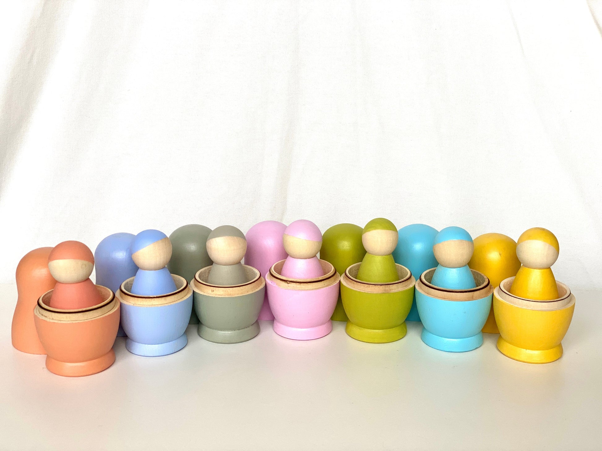 Wooden Nesting Dolls with Pegs Pastel